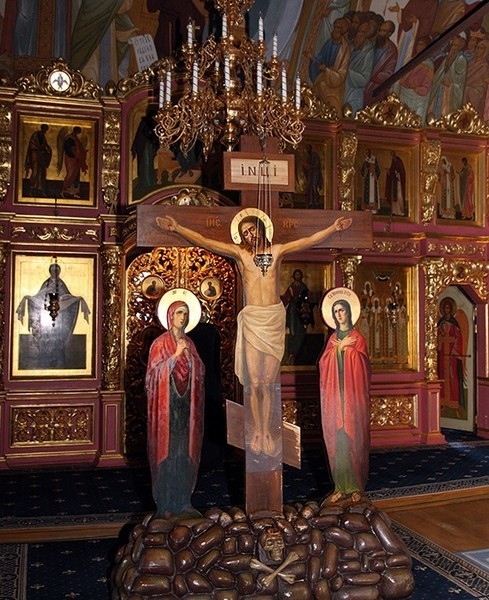 «Сегодня мы с вами слышали в песнопениях: "Днесь висит на древе, Иже на водах землю повесивый". Если вдуматься в значение Креста Христова, то для нашего человеческого понимания он некое безумие. Распинается Тот, Кто является Творцом всего, Который "на водах землю повесил", Который в руке своей содержит всю Вселенную. И мы сегодня воспоминаем Его страдания на Кресте.