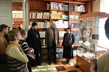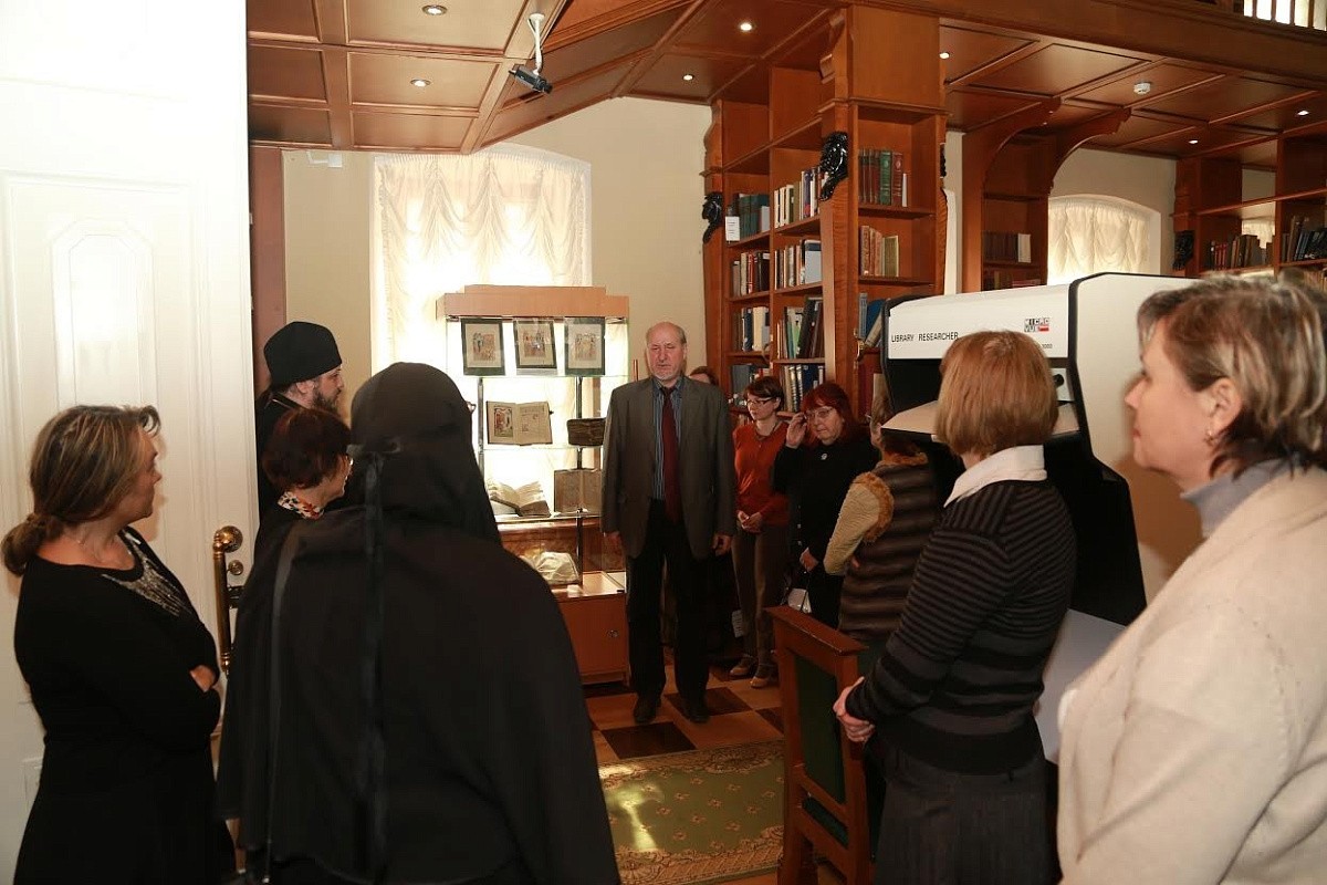 В экспозиции представлены древние Евангелия, жития преподобного Иосифа, его «Просветитель» из фондов Волоколамского монастыря, хранящиеся в РГБ.