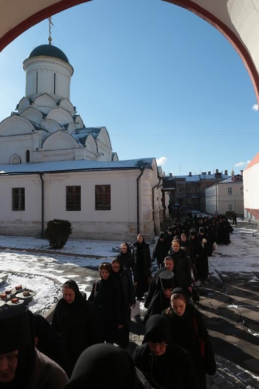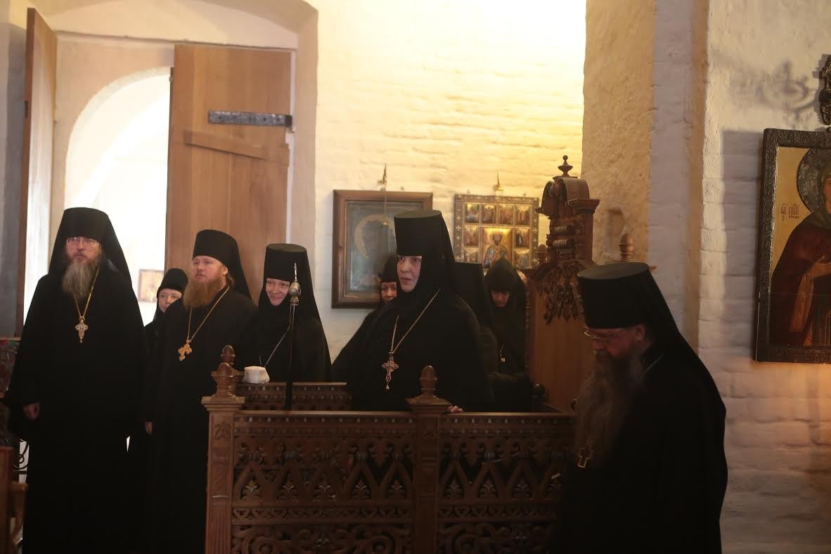 За богослужением молились: наместник Данилова ставропигиального мужского монастыря архимандрит Алексий (Поликарпов); наместник Саввино-Сторожевского ставропигиального мужского монастыря архимандрит Савва (Фатеев); наместник Николо-Угрешского ставропигиального мужского монастыря игумен Варфоломей (Петров); Заместитель Председателя Синодального отдела по монастырям и монашеству игумен Стефан (Тараканов); братия Введенского ставропигиального мужского монастыря Оптина пустынь; настоятельница Богородице-Рождественской обители игумения Викторина (Перминова); Заместитель Председателя Синодального отдела по монастырям и монашеству, настоятельница Зачатьевского ставропигиального женского монастыря игумения Иулиания (Каледа); настоятельница Покровского Хотькова ставропигиального женского монастыря игумения Олимпиада (Баранова); настоятельница Александро-Невского Ново-Тихвинского женского монастыря г. Екатеринбурга игумения Домника (Коробейникова); настоятельница Борисоглебского Аносина ставропигиального женского монастыря игумения Мария (Солодовникова); настоятельница Казанской Амвросиевской ставропигиальной женской пустыни Шамордино игумения Сергия (Щербакова); главный редактор официального сайта Синодального отдела по монастырям и монашеству Е.П. Орлова; председатель Правления Фонда имени Великой княгини Евдокии Московской телеведущая Л.С. Акелина; сестры и прихожане обители.