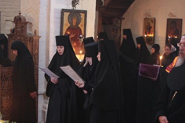 В этот день Председатель Синодального отдела по монастырям и монашеству архиепископ Сергиево-Посадский Феогност совершил богослужение в Богородице-Рождественской обители.