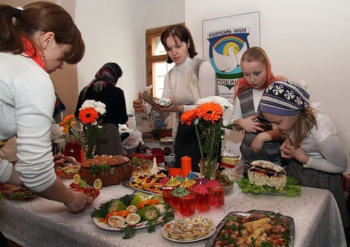 Дети из центра «Покров» делились с корреспондентом телеканала «Россия» рецептами постных коврижек, которые они приготовили сами. Также в их меню были и гречневые котлеты, и овощные голубцы, и квашеная капуста, которые дети вместе со взрослыми заготавливают осенью. Рецепты плова с креветками, чечевичных котлет, а также суши представили воспитанники Воскресной школы «Упование» храма в честь Иконы Божией Матери «Утоли моя печали» в Марьино.