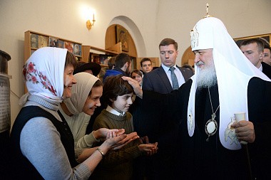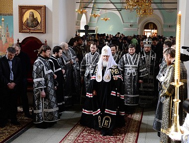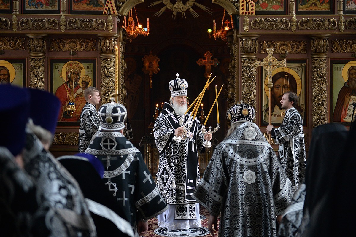 После сугубой ектении Предстоятель Русской Православной Церкви вознес молитву о мире на Украине.