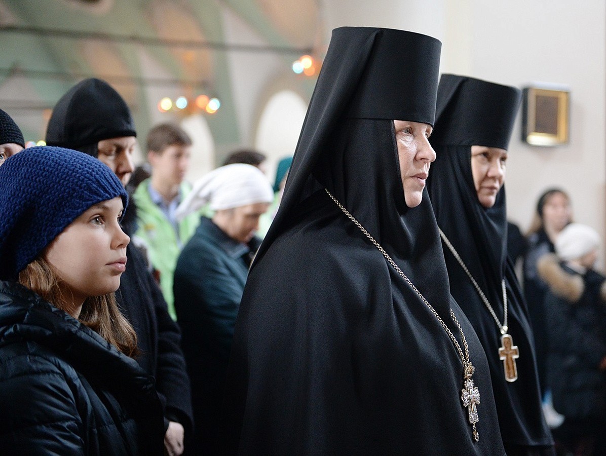 Также за богослужением молились: настоятельница Зачатьевского ставропигиального женского монастыря, Заместитель Председателя Синодального отдела по монастырям и монашеству игумения Иулиания (Каледа); настоятельница Богородице-Рождественского ставропигиального женского монастыря игумения Викторина (Перминова).
