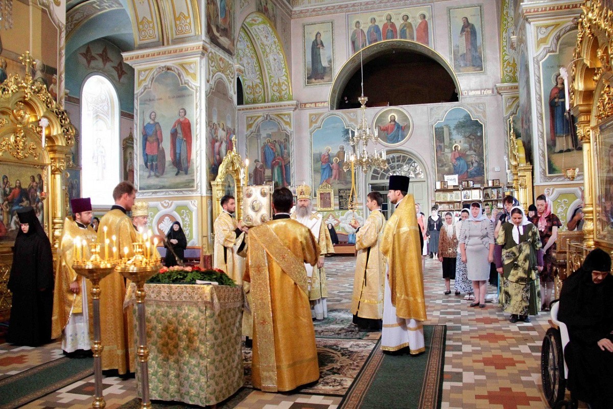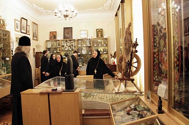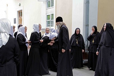 3 июля, в среду, прибывших в обитель гостей встретила настоятельница монастыря игумения Рафаила. Владыка Феогност и другие гости обители поклонились главной святыне монастыря – чудотворному образу Божией Матери «Споручница грешных», ознакомились с достопримечательностями монастыря и посетили Регентско-катехизаторское духовное училище.