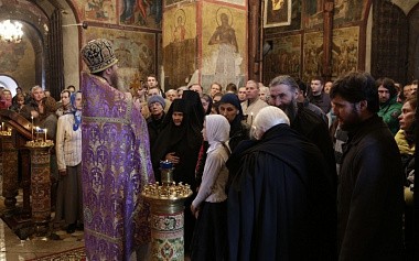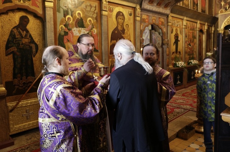 В Великий Четверток вся монастырская братия участвуют в богослужении, молятся и причащаются Святых Христовых Таин, а также многочисленные прихожане и гости обители – причастников насчитывалось около двухсот человек.