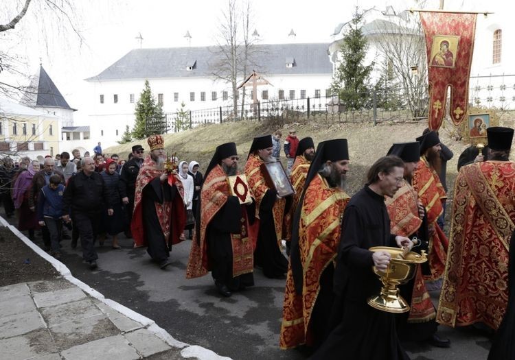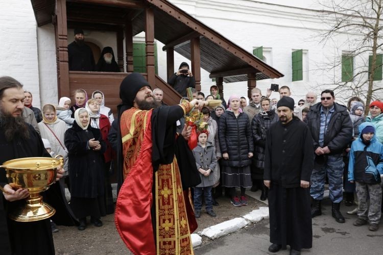 В Саввино-Сторожевском ставропигиальном мужском монастыре, как и во всех православных монастырях и храмах, в течение всей Светлой седмицы по окончании Божественной литургии проходил крестный ход.