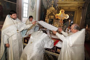 Божественную литургию возглавил митрополит Днепропетровский и Павлоградский Ириней, приехавший помолиться за своих усопших родителей, которые погребены на Георгиевском городском кладбище. Его Высокопреосвященству сослужило духовенство обители.