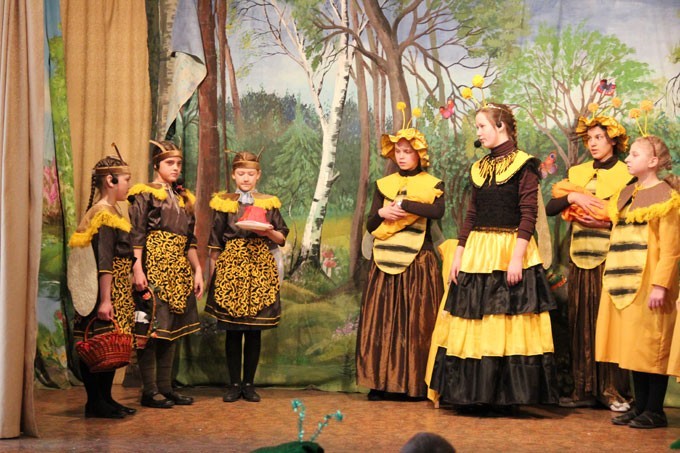 Ученики младшей группы Воскресной школы прочли стихи и исполнили песню «Милая мамочка», дети средней группы показали «Сказку о воскресшей Ромашке и Божией букашке».