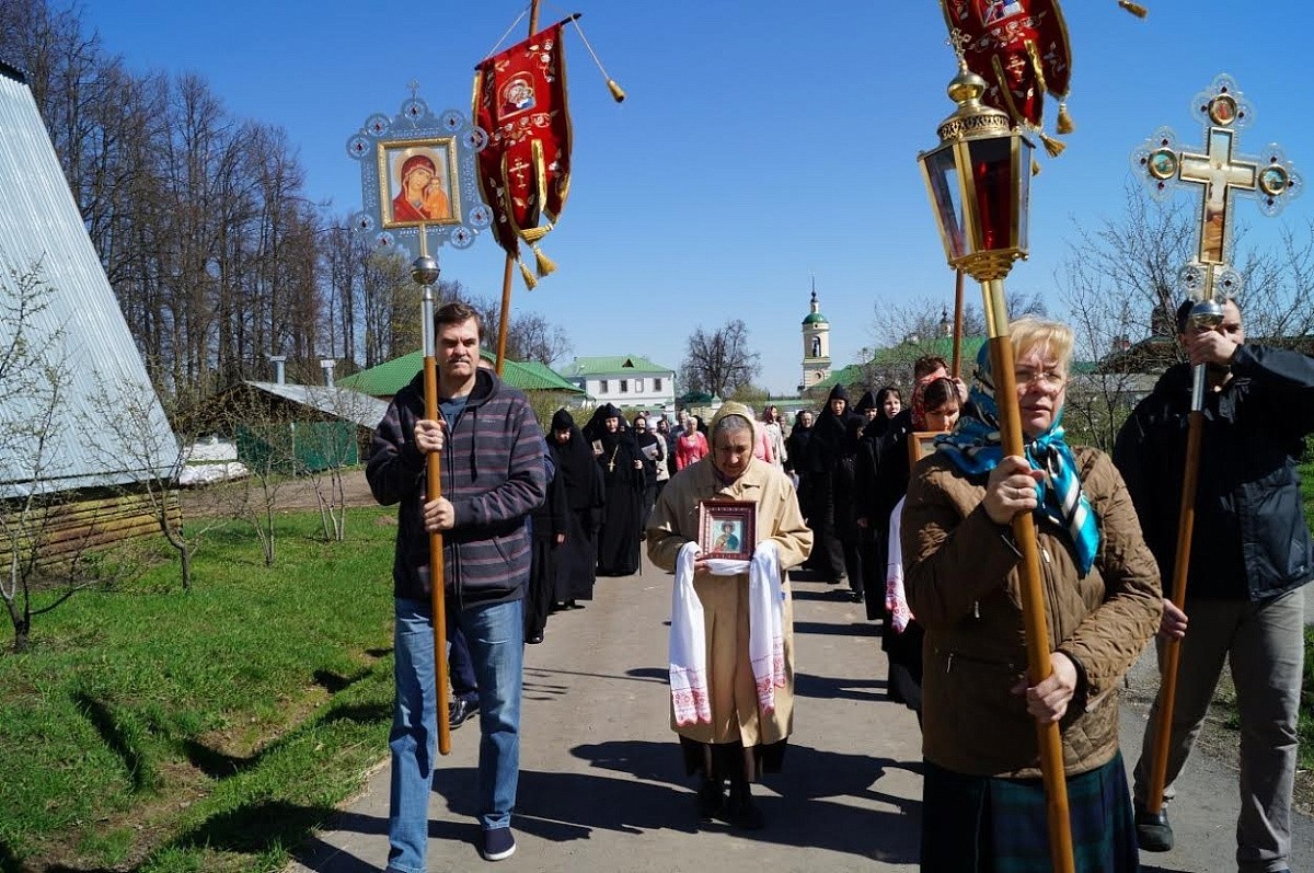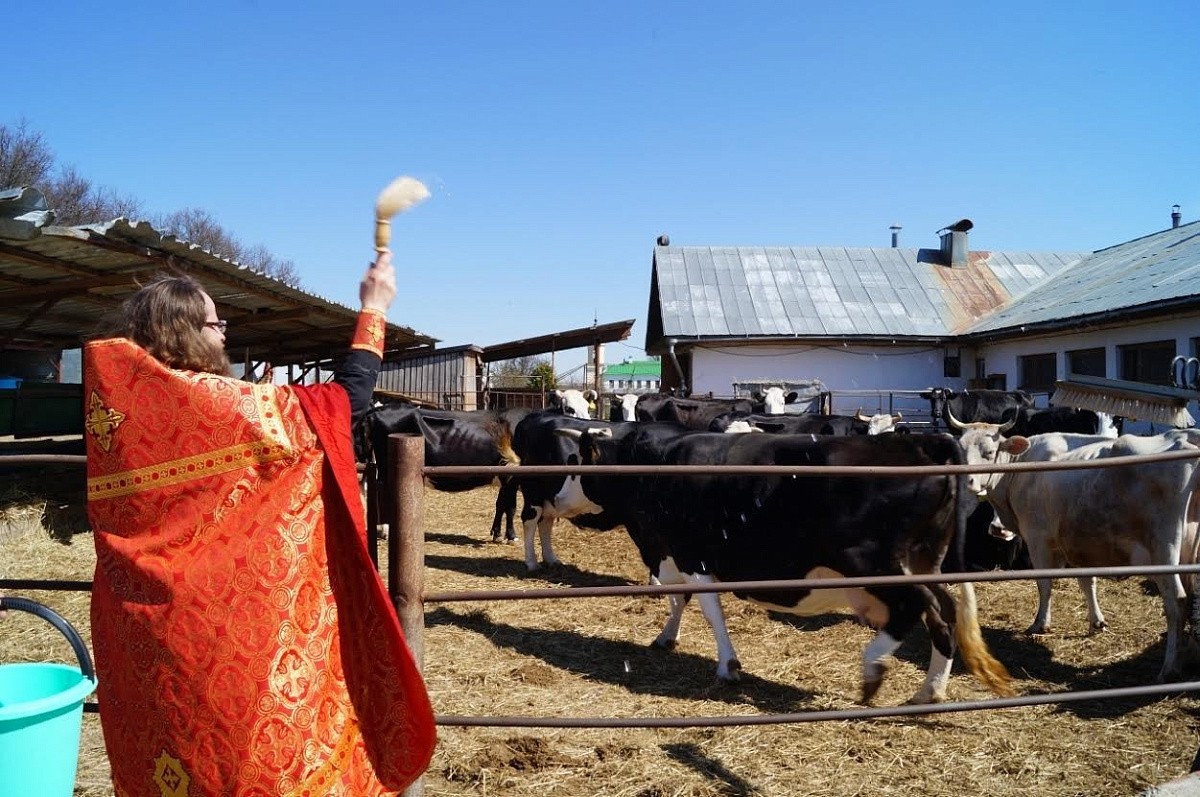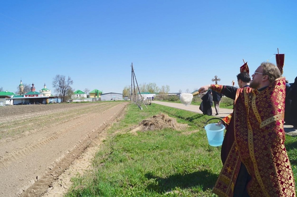 По завершении молебна священнослужители, сестры и прихожане обители крестным ходом с молитвенным пением обошли монастырские поля, огороды, теплицы, пчельник, коровник, курятник и сад. Поля и животные были окроплены святой водой с молитвой о даровании земле плодородия, животным – здоровья и плодовитости, а также об избавлении от вредителей и стихийных бедствий.