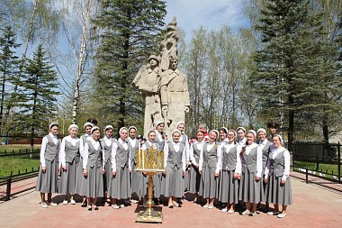 Воспитанницы детского пансиона при монастыре почтили память защитников Отечества участием в праздничном концерте в Парке Победы г. Хотькова. Они исполнили военные песни, поздравили ветеранов и жителей города с Днем Победы.