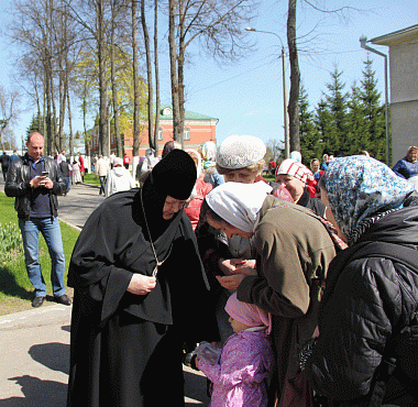 В обители дети вместе с настоятельницей монастыря игуменией Олимпиадой (Барановой) преподнесли подарки престарелым сестрам, участницам Великой Отечественной войны и труженицам тыла, и исполнили для них песни военных лет