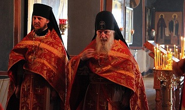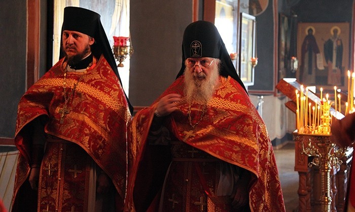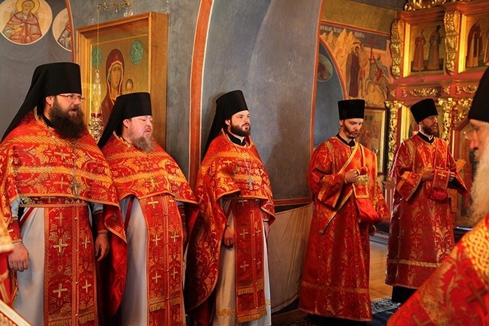 Преосвященным сослужила братия обители в священном сане.
