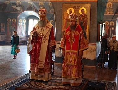 13 мая 2015 года, в день отдания праздника Преполовения Пятидесятницы, день памяти свт. Игнатия (Брянчанинова), еп. Кавказского, Председатель Синодального отдела по монастырям и монашеству архиепископ Сергиево-Посадский Феогност и наместник Новоспасского ставропигиального мужского монастыря, викарий Святейшего Патриарха Московского и всея Руси епископ Воскресенский Савва совершили Божественную литургию в храме Покрова Божией Матери Новоспасской обители.