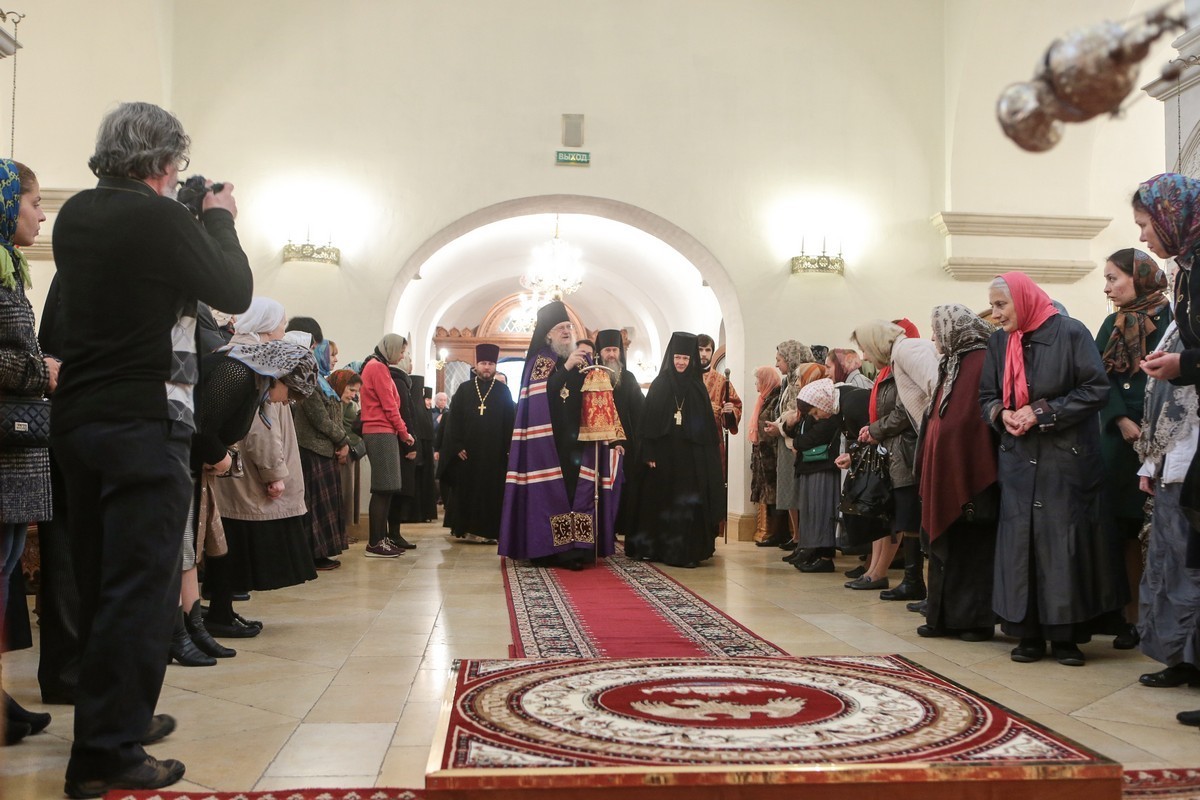 Позднюю Божественную литургию в приделе собора по благословению Святейшего Патриарха Московского и всея Руси Кирилла возглавил епископ Серафим в сослужении монастырского духовенства и священнослужителей-гостей обители. Перед началом богослужения вокруг обители был совершен крестный ход во главе с Его Преосвященством.
