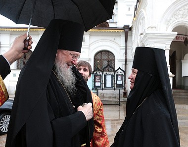 Мы благодарим Вас за то, что Вы приехали к нам даже в такой сырой день, но как солнышко вошли в Обитель и все освятили. Уже перед службой совершили крестный ход вокруг обители. Нас пожалели, чтоб мы под дождем не ходили, объехали все, освятили. Благодарим за Вашу молитву, благодарим за Вашу любовь к нашей обители.