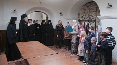 Учащиеся Воскресной школы исполнили для епископа Серафима и настоятельницы обители праздничные песнопения.