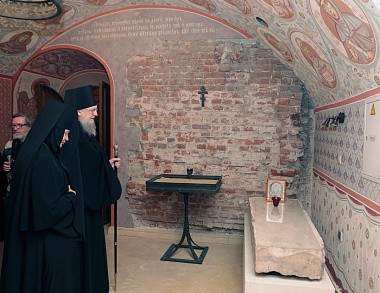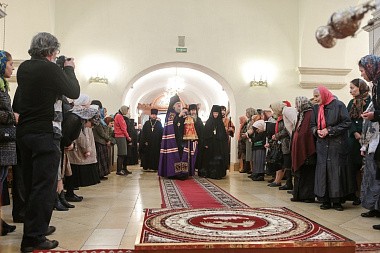 Владыка Серафим посетил также и подземный придел собора во имя Преподобных отцев и матерей и совершил в костнице, где находятся останки монастырских сестер, заупокойную литию с молитвенным поминовением игумений и монахинь обители.