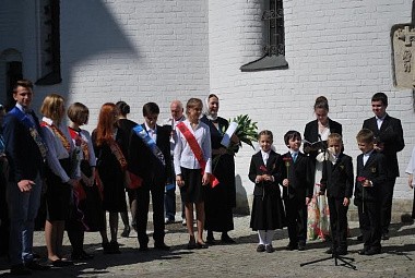Затем для выпускников прозвенел последний звонок. В этот момент на площадь обители принесли связку воздушных шаров и выпустили их в небо.