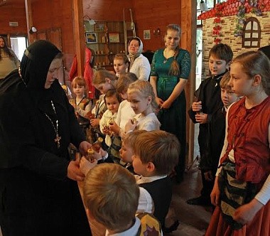 Игумения Екатерина поблагодарила всех за участие в спектакле и раздала небольшие подарки.