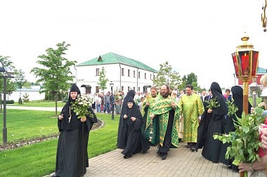 По окончаниибогослужения состоялся крестный ход вокруг трех храмов обители.