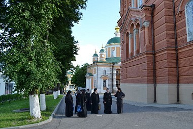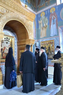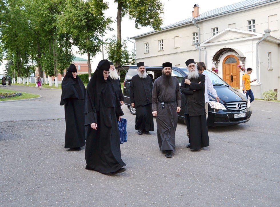 Гости поклонились святым мощам прпп. Кирилла и Марии, родителей прп. Сергия Радонежского, затем прошли в Покровский собор, где узнали сведения из жития покровителей обители и осмотрели росписи собора. В соборе святогорские отцы пропели тропарь Пресвятой Богородице «Взбранной Воеводе» на греческом языке. Также гости осмотрели территорию обители и ознакомились с историей монастыря.