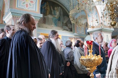 Нижняя теплая церковь освящена во имя Всех Святых в 1849 году святителем Игнатием (Брянчаниновым).