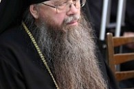 Архимандрит Алексий (Поликарпов) от лица братии и паломников приветствовал Святейшего Владыку и преподнес Его Святейшеству икону святого благоверного князя Даниила Московского.