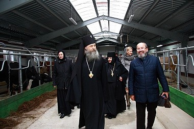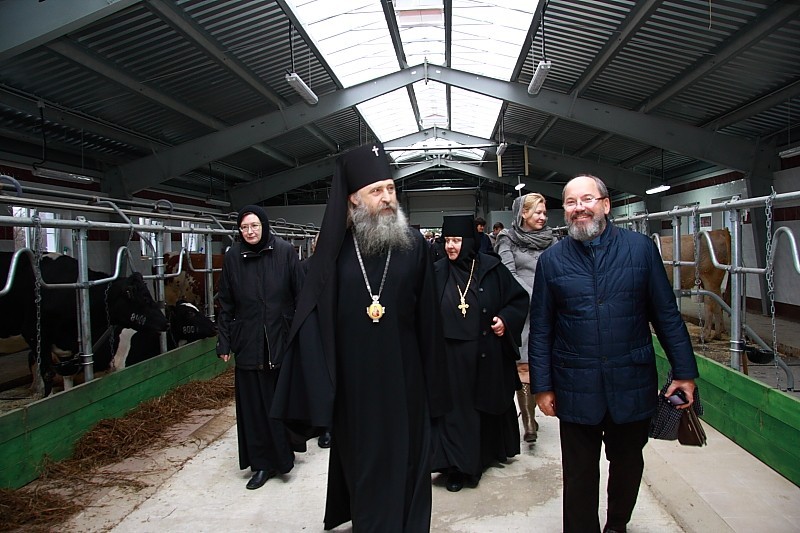 Затем архиепископ Феогност, игумения Елисавета (Жегалова) и почетные гости осмотрели территорию и оборудование новой монастырской фермы, выстроенной в этом году стараниями В.И. Даниленко. Здесь же, в здании фермы, архиепископ Феогност отслужил благодарственный молебен.