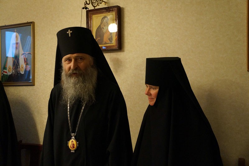Завершив проповедь, владыка Феогност в сопровождении духовенства, игумении монастыря Ксении (Чернеги) и сестёр обители прошёл в трапезную. Владыка обратил внимание на то, что в монастыре служит немало священников, и это является большим благом для обители (в некоторых монастырях ощущается нехватка священнослужителей). Владыка Феогност призвал сестёр заботиться о своих батюшках и благословил их на созидание своего монастырского мира так, чтобы не монахини шли в мир, а миряне сами бы устремлялись в обитель, чувствуя сокрывающуюся в ней благодать молитвы и любви, чтобы на практике исполнилось замечательное изречение: «Свет миру – иноки, свет монахам – ангелы!»