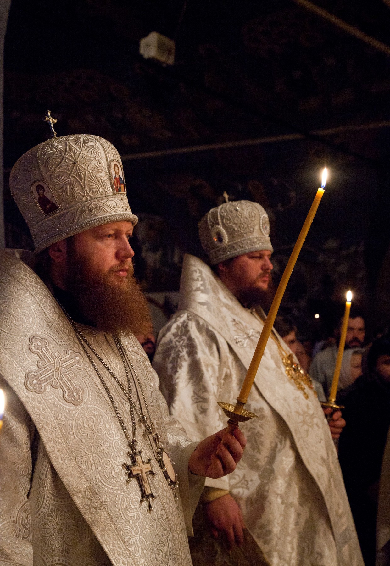 Владыкам сослужило духовенство города Москвы и братия Новоспасского монастыря во священном сане.