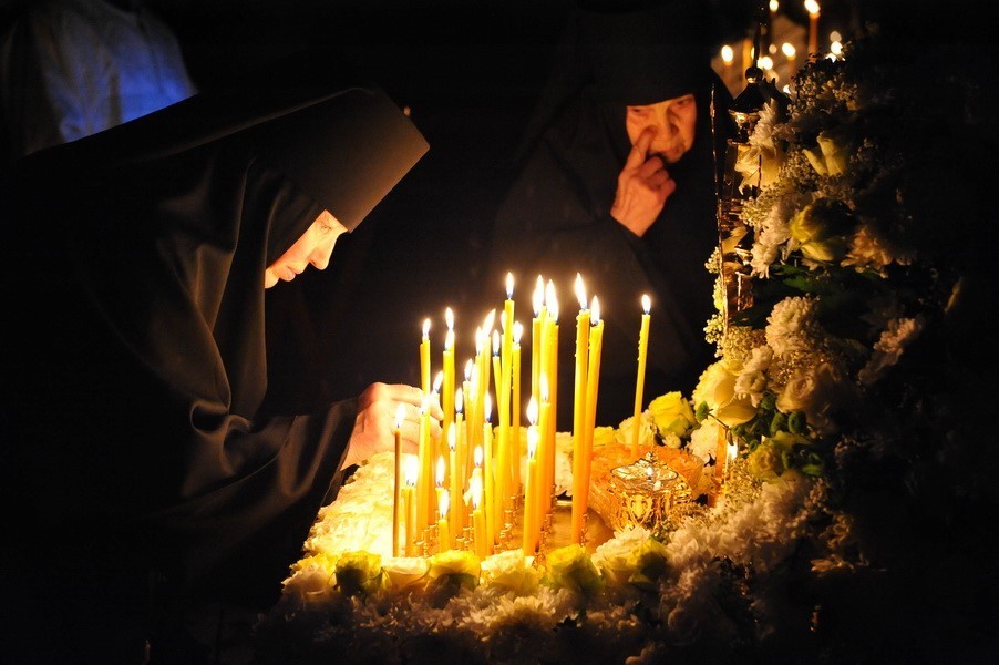 За богослужением молились игумения Иулиания (Каледа), настоятельница московского Зачатьевского ставропигиального монастыря, заместитель председателя Отдела; игумения София (Силина), настоятельница Воскресенского Новодевичьего монастыря в Санкт-Петербурге, член коллегии Отдела; игумения Филарета (Калачева), настоятельница Успенского Пюхтицкого монастыря с сестрами, насельницы Свято-Иоанновского ставропигиального монастыря в Санкт-Петербурге, прихожане Пюхтицкой обители.