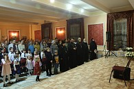 Чтения завершились небольшим концертом детского хора «Синяя птица» школы № 1245 Северного Бутова (художественный руководитель Воронов Петр Николаевич), лауреата международных конкурсов, прекрасно исполнившего целый ряд произведений духовных композиторов.