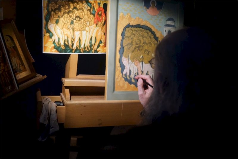 В иконописной мастерской Спасо-Преображенского Валаамского ставропигиального мужского монастыря заканчиваются работы над аналойной иконой «Со́рок Севасти́йских му́чеников».