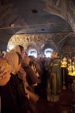 За богослужением Владыке сослужили игумен Паисий (Юрков), благочинный обители, и братия монастыря в священном сане. За Литургией пел хор Новоспасского монастыря под управлением регента С.П. Кирюшина. Святых Христовых Таин в этот день приобщились более 700 человек.