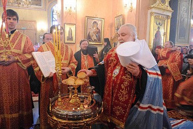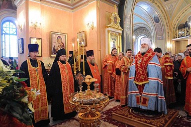 По окончании богослужения митрополит Истринский Арсений поздравил верующих с праздником и обратился к ним с архипастырским словом.