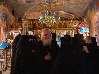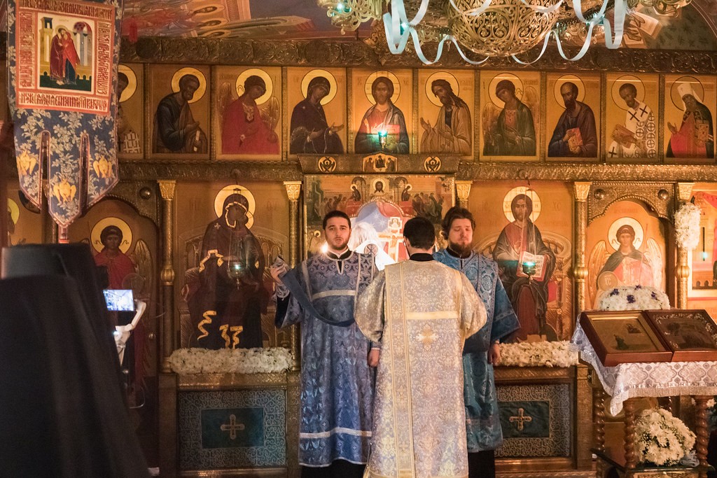 Его Высокопреосвященству сослужили клирики Зачатьевской обители.