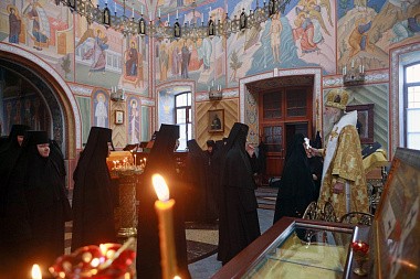Церковные песнопения исполнил хор сестер монастыря под управлением монахини Гавриилы (Водолазовой).