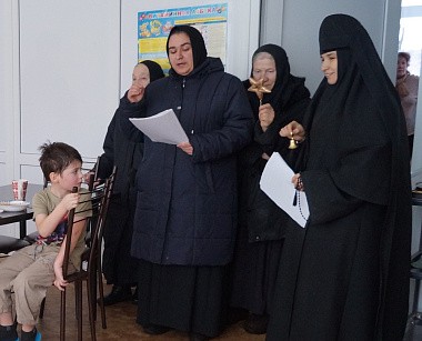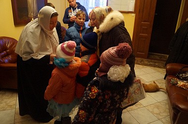 Сестры и гости исполнили друг другу святочные песни, а матушка игумения подарила всем сладкие подарки.