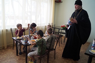 Отец Владислав побеседовал с детьми о празднике Рождества Христова и заповедях Господних, сестры исполнили традиционные колядки, дети с увлечением отвечали на вопросы небольшой рождественской викторины и тоже спели гостям разученную к празднику песню.