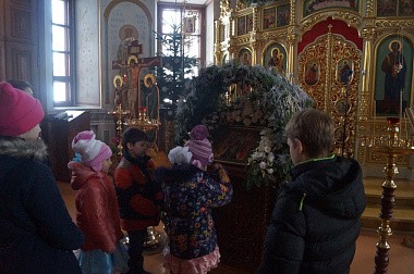 Ребята из старшей группы Детского центра поклонились святыням Троицкого собора, набрали освященной крещенской воды, ознакомились с монастырским хозяйством, пообщались с настоятельницей обители игуменией Марией (Солодовниковой) и сестрами, посетили музей.