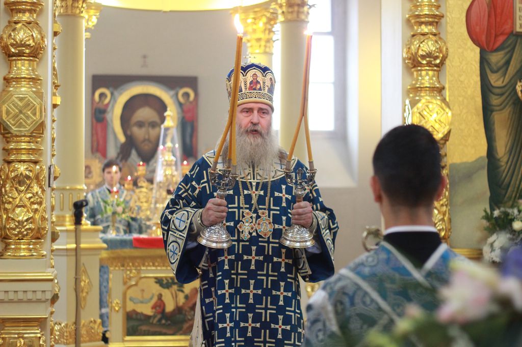 Позднюю Божественную литургию в Вознесенском соборе обители возглавил председатель Синодального отдела по монастырям и монашеств архиепископ Каширский Феогност.