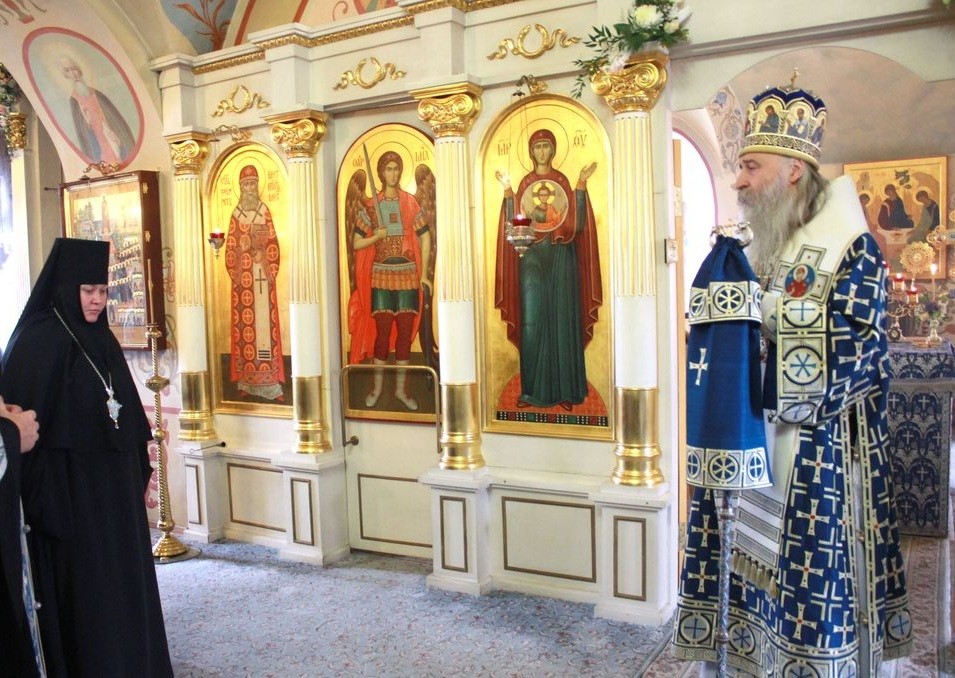 По окончании молебна архиепископ Феогност поздравил игумению Екатерину с престольным праздником и произнес проповедь: