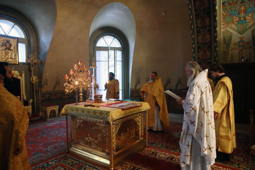 Его Высокопреосвященству сослужило монастырское духовенство.