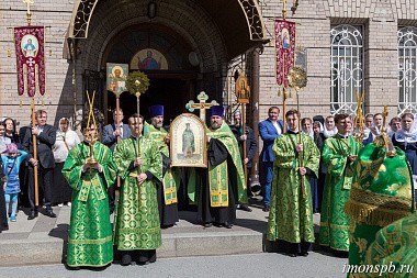 Литургия завершилась молебном святому праведному Иоанну Кронштадтскому и крестным ходом вокруг обители.