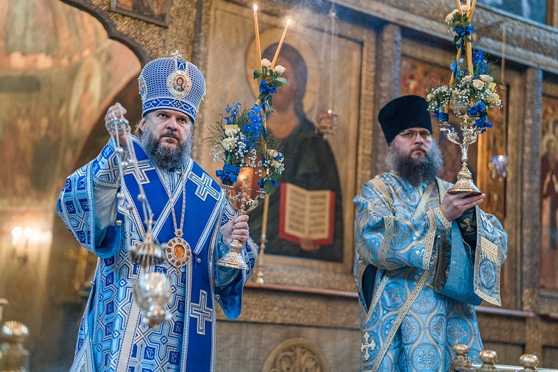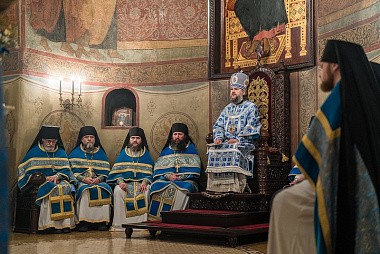 Праздничные богослужения прошли в монастырском соборе Сретения Владимирской иконы Божией Матери. Всенощное бдение и Божественную литургию возглавил наместник обители архиепископ Верейский Амвросий.