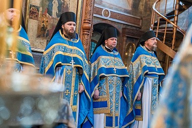Его Высокопреосвященству сослужили сослужили насельники обители: иеромонахи Марк (Святогоров), Никодим (Бекенев), Игнатий (Шестаков), Ириней (Пиковский), Павел (Щербачев), Иона (Кудряков), Севастиан (Астафуров), Никон (Париманчук), Иннокентий (Присадков), Спиридон (Дорош), Лавр (Архипов) и Афанасий (Дерюгин); иеродиаконы Серафим (Чернышук), Феодосий (Кулиш), Агафангел (Довлатов), Платон (Кудласевич), Сергий (Демин) и Савва (Салюк).
