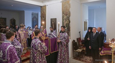 За богослужением молились настоятельница Богородице-Рождественского ставропигиального женского монастыря игумения Викторина (Перминова), Полномочный представитель Президента Российской Федерации в Центральном федеральном округе А.Д. Беглов, главный федеральный инспектор по г. Москве аппарата Полномочного представителя Президента Российской Федерации в Центральном федеральном округе В.А. Лавленцев, советник Полномочного представителя Президента Российской Федерации в Центральном федеральном округе М.Н. Белогубова, сестры и прихожане обители.