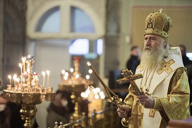 По окончании Литургии архиепископ Феогност поздравил всех с праздником и обратился к собравшимся с архипастырским словом.