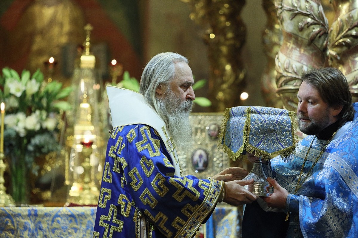 Позднюю Божественную литургию возглавил наместник Донского монастыря епископ Бронницкий Евгений.