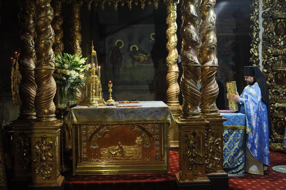 По окончании богослужения духовенство совершило славление у мощей святителя Тихона.